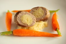 Helyezzünk 1-2ek savanyú káposztát és néhány szál répát a tányérra. Vágjunk ferdén félbe egy húsbonbont, s helyezzük el a savanyú káposztán. Ízlés szerint friss fehér kenyérrel és tejföllel együtt tálaljuk.