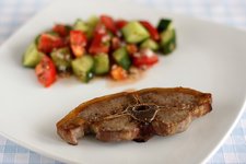 Tálaláskor helyezzünk el egy szelet báránygerincet a tányéron és tegyünk mellé a salátából.